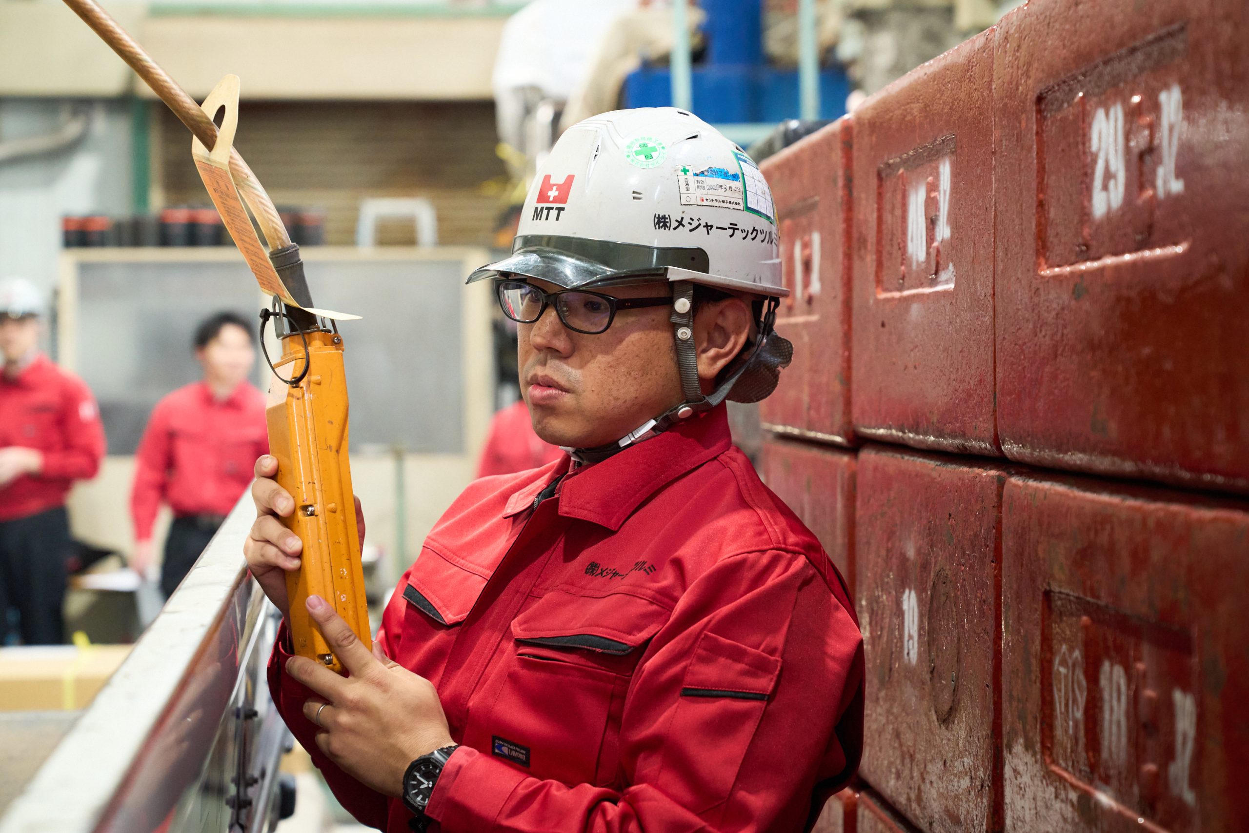 技術課として、取引先の“はかり”の定期検査をしています。基本的には数人で取引先に訪問して検査をおこないますが、最近は仕事を覚えてきたこともあり、一人で現場に行くことも増えてきました。