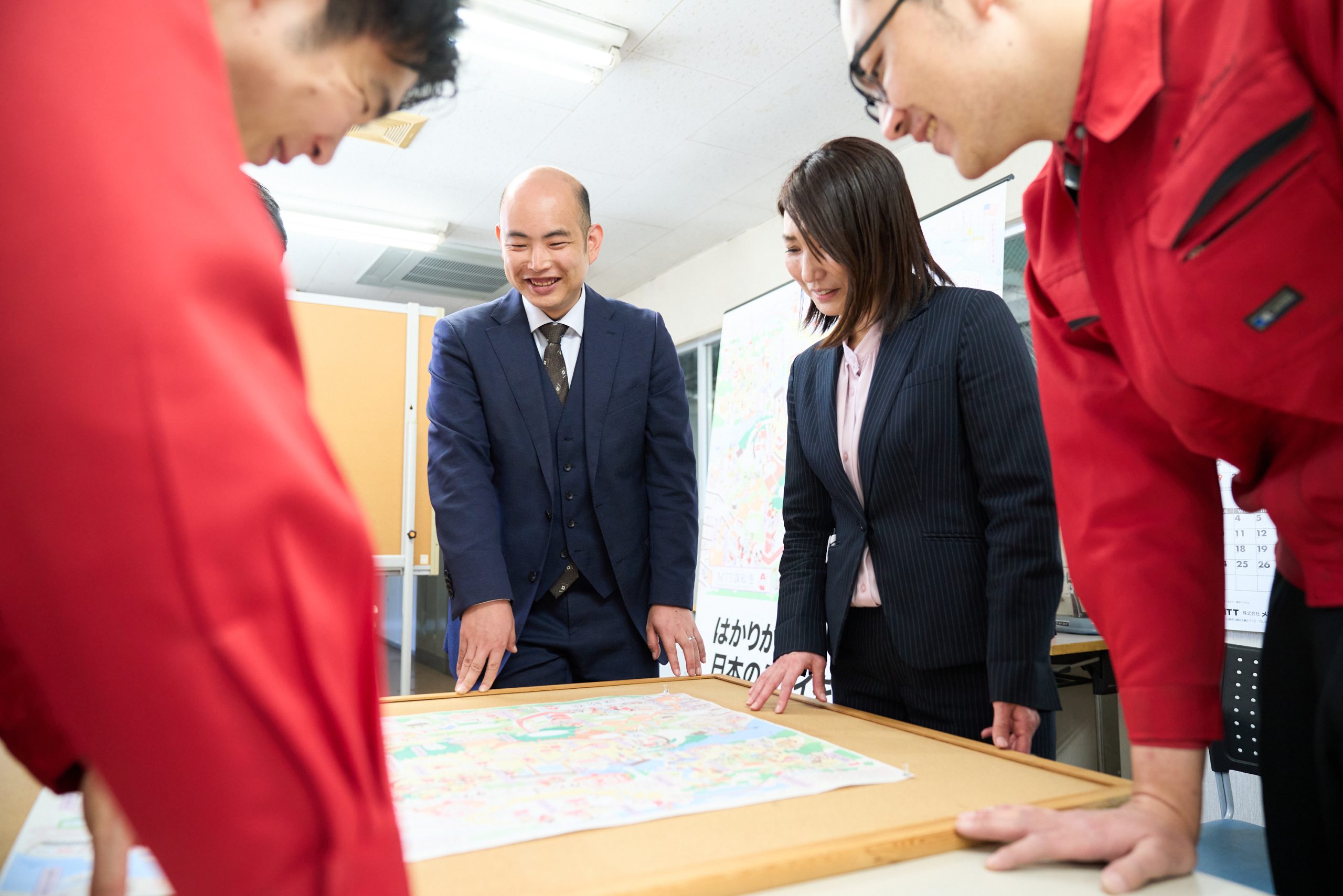 技術課ほどは現場に出ないですけど、どうしても人がいない時は手伝うこともありますし、「ここの現場を勉強しておきたいな」っていう取引先には、技術課の方達と一緒に行って現場仕事をやったりします。その方が、仕事を早く覚えられる時もあるからです。そんな意気込みの私も、現場に出れば次の日は筋肉痛ですし(笑)、営業課も肉体労働な瞬間もあるってことを、最初から知っておいた上で入社されるのが良いかなって思います。
